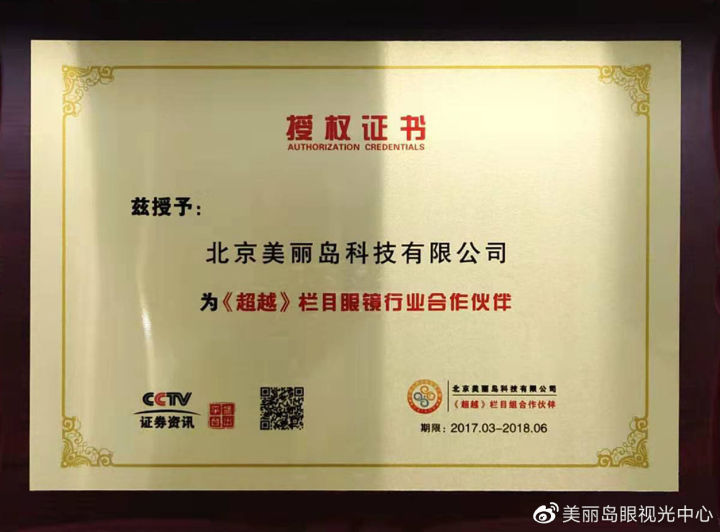 2017年4月,北京美麗島科技有限公司相關負責人受邀參加CCTV證券資訊頻道《超越》欄目,為現(xiàn)場媒體分享如何健康用眼。美麗島眼鏡憑借超前的品牌理念和先進的創(chuàng)新技術成功入圍中國品牌創(chuàng)新發(fā)展工程,成為CCTV證券資訊頻道《超越》欄目眼鏡行業(yè)合作伙伴。